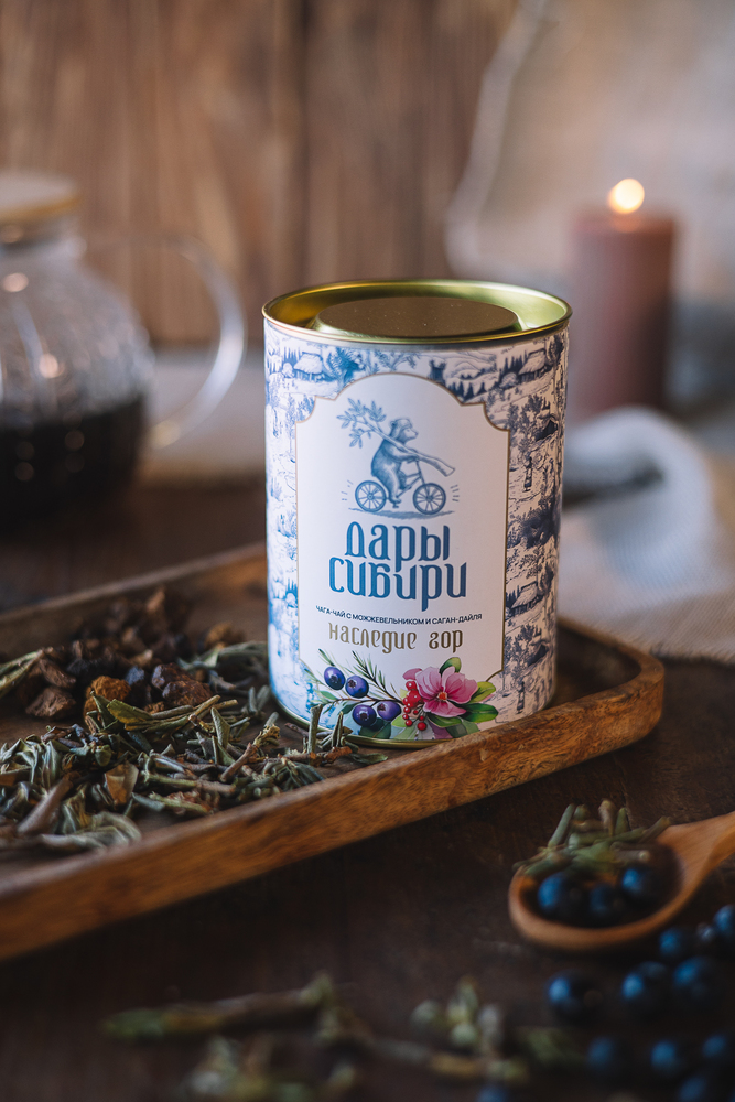 Чай из чаги с можжевельником и саган-дайля «Наследие Гор» от бренда Дары Сибири — это ароматный и бодрящий напиток, который сочетает в себе глубокий и освежающий вкус чаги, пряного можжевельника и ароматного саган-дайля.