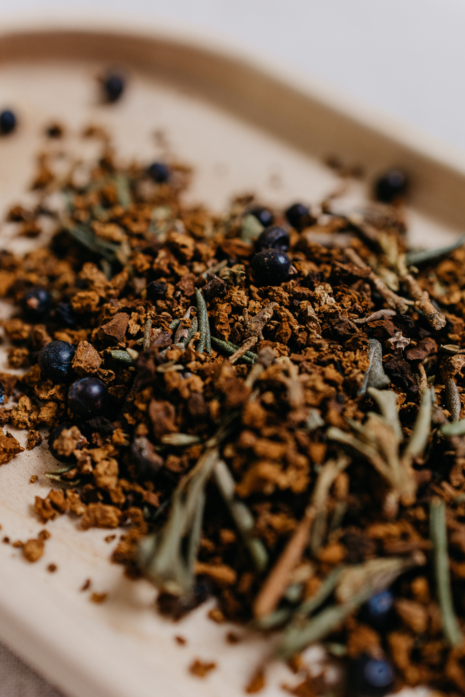 • Гармония вкусов: Насыщенный вкус чаги с легкой горчинкой идеально дополняется пикантными нотками можжевельника.