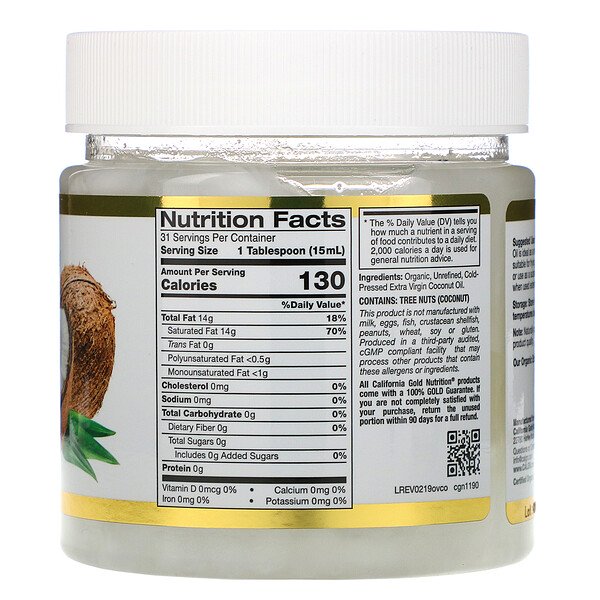 California Gold Nutrition Органическое кокосовое масло первого холодного отжима, 473 мл