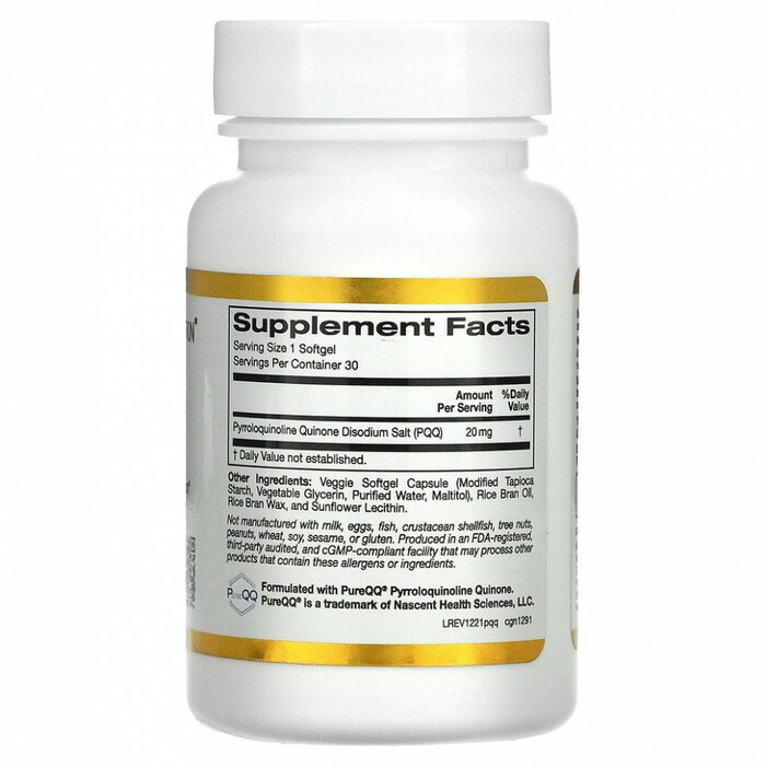 California Gold Nutrition Пирролохинолин PQQ (20 мг), 30 капсул