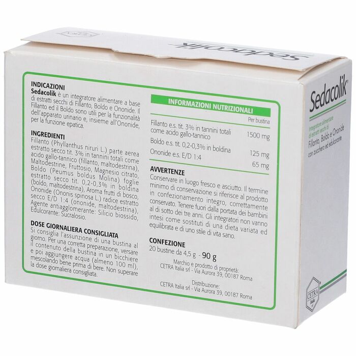 Cetra Italia Sedacolik — это идеальное решение для поддержания здоровья всей семьи. В каждой упаковке содержится 20 саше с уникальной формулой, которая обеспечивает ваш организм необходимыми веществами.