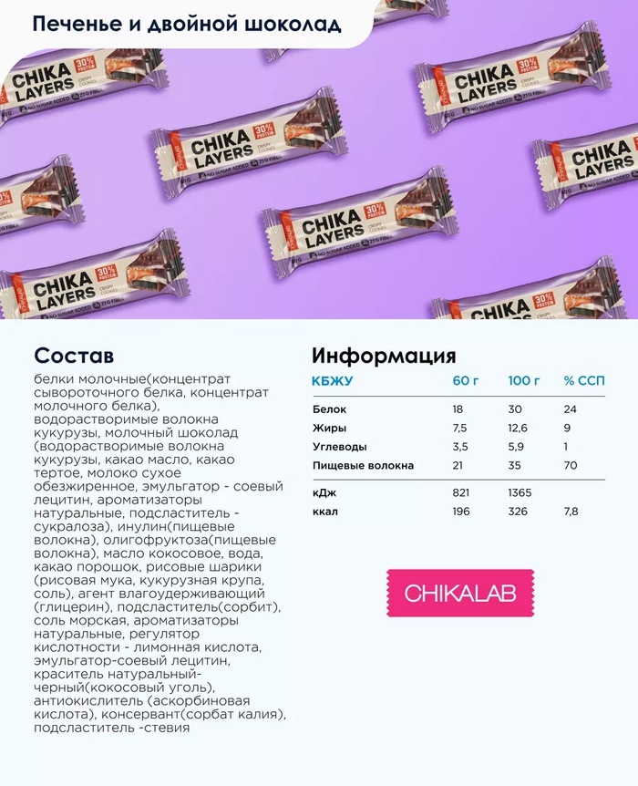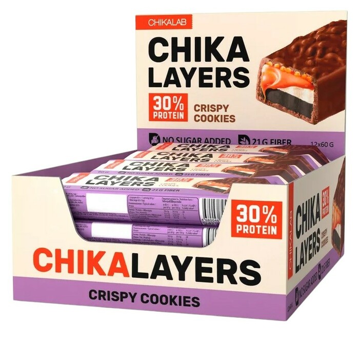 Chikalab Протеиновый батончик Chika Layers Печенье-Двойной шоколад, 60 г