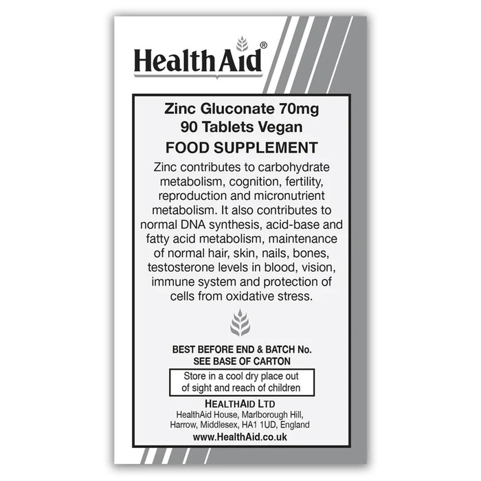 Health Aid Цинк Глюконат (70 мг), 90 табл