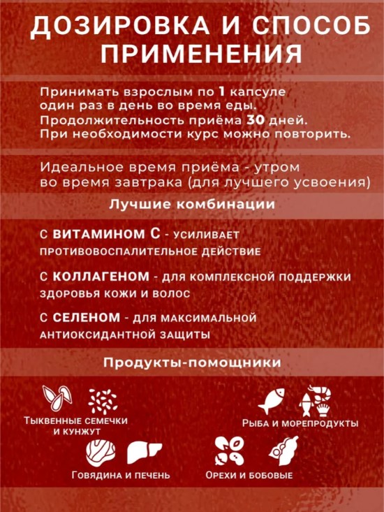 Капсулы легко проглатываются и подходят для ежедневного использования. Рекомендуется принимать их в периоды повышенных физических и умственных нагрузок, а также для поддержания общего состояния здоровья.