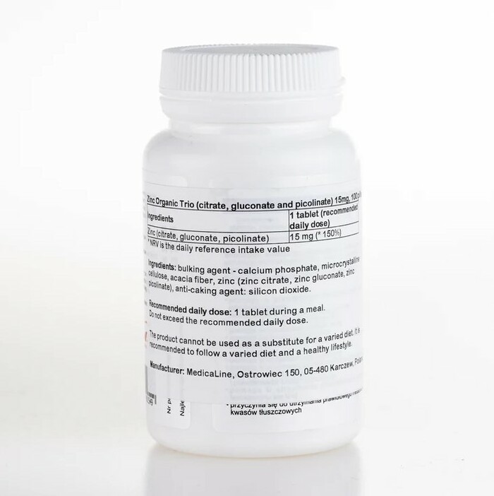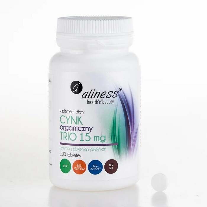 Цинк Органический Трио Aliness 15 мг — это высококачественная добавка, которая обеспечивает организм необходимым количеством цинка. В каждой упаковке содержится 100 таблеток, что делает продукт удобным для длительного использования.