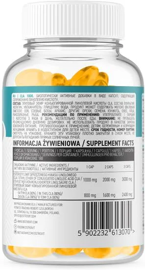 • Улучшение обмена веществ: CLA активирует обмен веществ, что способствует более эффективному сжиганию калорий.