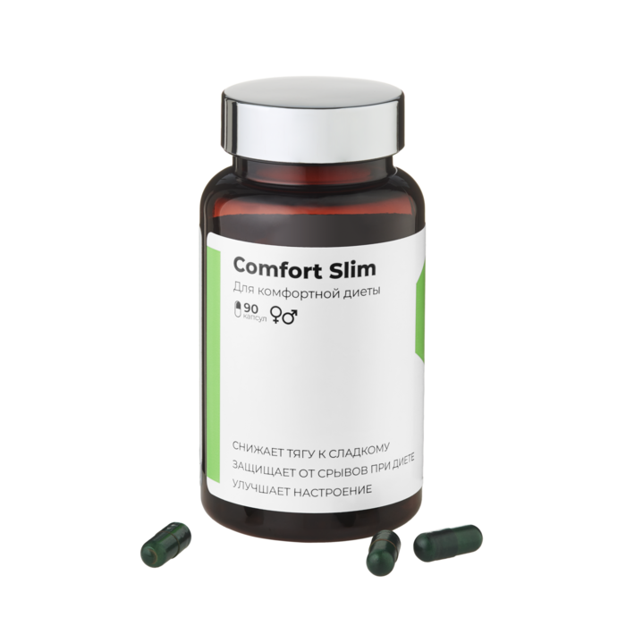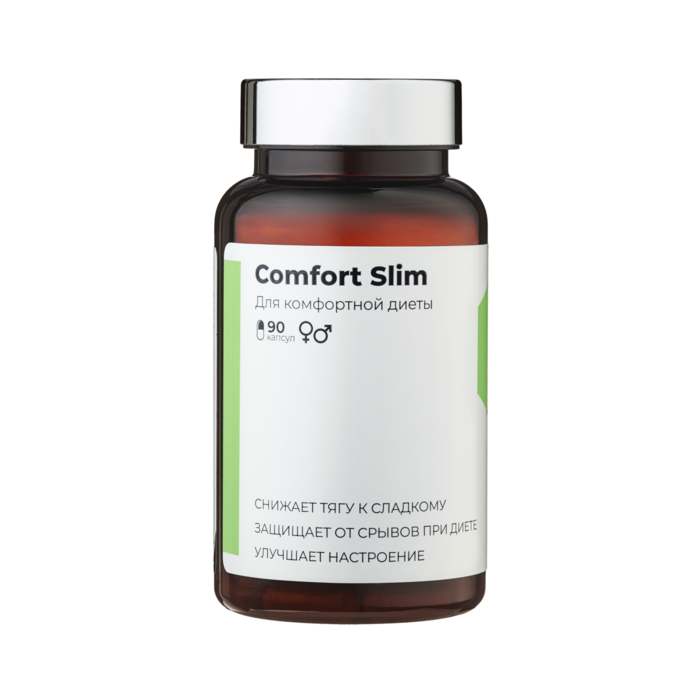 Comfort slim — комплексное решение для легкого старта диеты. способствует снижению синтеза жира, блокирует тягу к сладкому и поддерживает хорошее настроение. результат — вы едите меньше, чувствуете себя энергичнее и постепенно теряете вес без срывов и перепадов настроения. Основные компоненты (в 2 капсулах):гидроксилимонная кислота — 240 мг,гимнемовые кислоты — 45 мг.