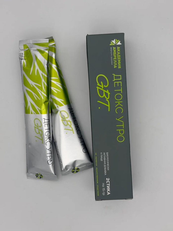 Напиток Детокс Утро GBT — это идеальное решение для начала вашего дня с зарядом энергии и полезных веществ. В каждой упаковке содержится 2 стика, которые помогут вам очистить организм и поддержать его в тонусе.