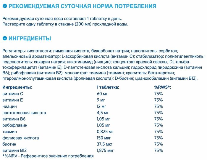Шипучие таблетки имеют приятный вкус и легко растворяются в воде, что делает их особенно привлекательными для детей. Комплекс подходит для использования в периоды простудных заболеваний, при умственных и физических нагрузках, а также при несбалансированном питании.