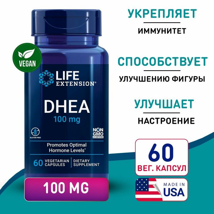 Каждая капсула Life Extension ДГЭА содержит 100 мг активного вещества, что делает продукт подходящим для тех, кто стремится поддержать гормональный баланс и улучшить общее самочувствие. В упаковке 60 капсул, что обеспечивает длительный курс применения. Продукт не содержит искусственных добавок и подходит для тех, кто ищет натуральные способы поддержания здоровья на гормональном уровне.