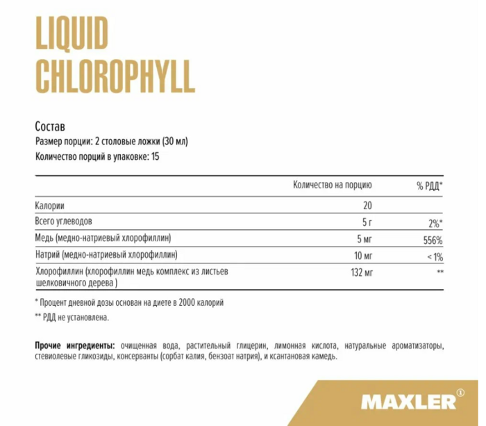 Жидкий хлорофилл Цитрус от бренда Maxler — это уникальный продукт, который поможет вам поддерживать уровень энергии и улучшить общее самочувствие. В каждой упаковке содержится 450 мл жидкого хлорофилла с освежающим цитрусовым вкусом, который легко добавлять в воду или другие напитки.