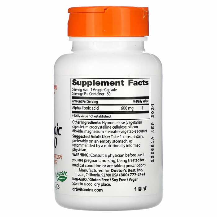 Doctor's Best Альфа-Липоевая кислота (600 мг), 60 капсул