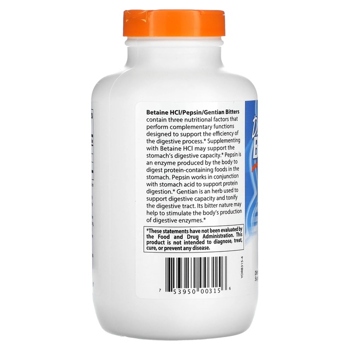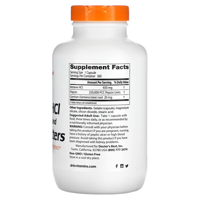 Doctor's Best Бетаин гидрохлорид, пепсин и горечавка горькая, 360 капсул
