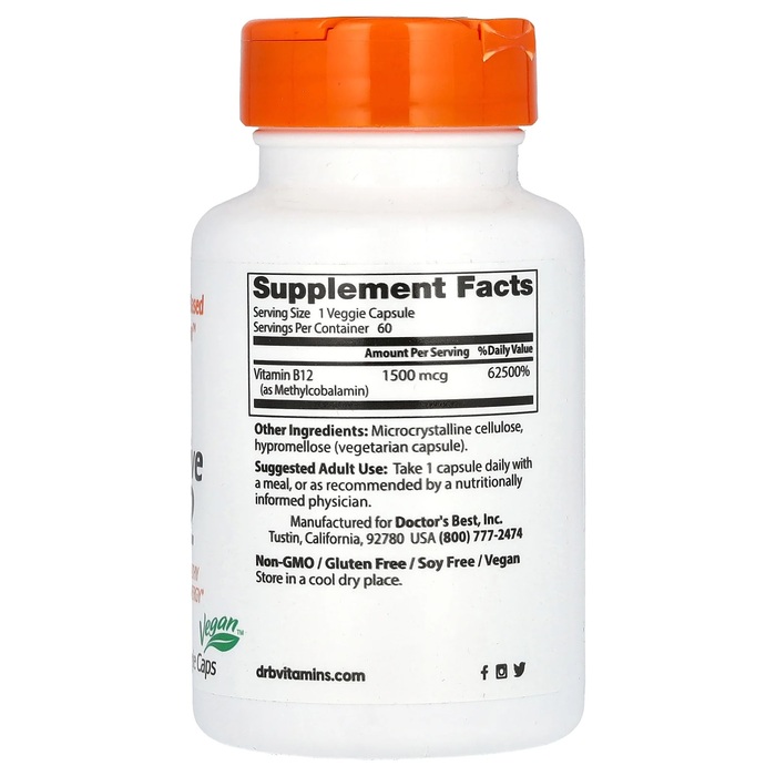 Doctor's Best Активный Витамин B12 (1500 мкг), 60 капсул