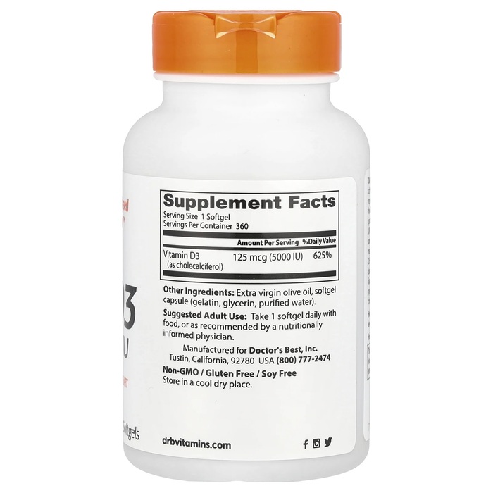 Doctor's Best Витамин D3 (5000 IU), 360 капсул