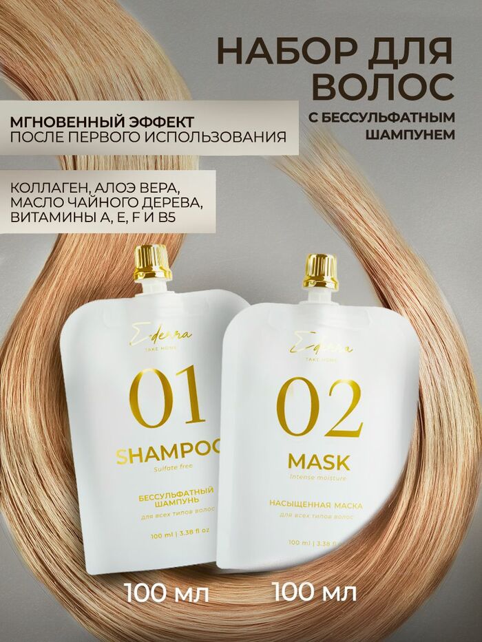 Дорожный набор шампунь бессульфатный 100 мл и маска 100 мл от бренда Ederra — это идеальное решение для ухода за волосами в поездках. Комплект включает в себя шампунь и маску, которые обеспечивают бережный уход и восстановление волос.