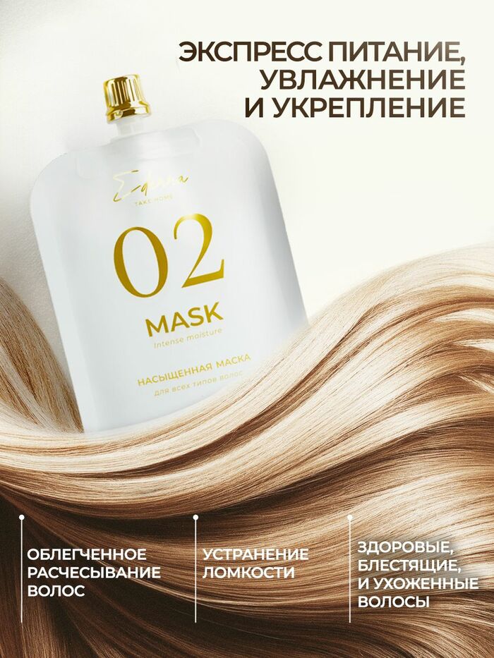 • Глубокое увлажнение: Маска интенсивно увлажняет волосы, придавая им мягкость и блеск.