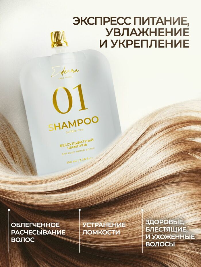 • Бессульфатная формула: Шампунь не содержит сульфатов, что делает его мягким и безопасным для всех типов волос.