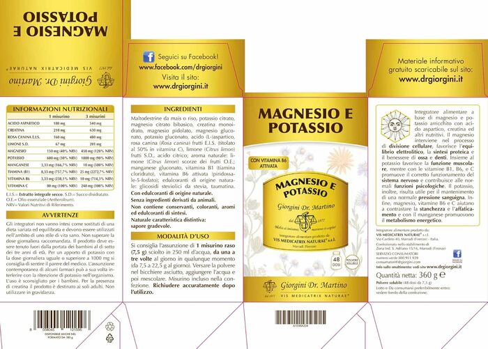 Dr. Giorgini Магний и Калий — это высококачественный порошок, который помогает поддерживать нормальный уровень магния и калия в организме. Упаковка содержит 360 г продукта, что обеспечивает длительное использование.