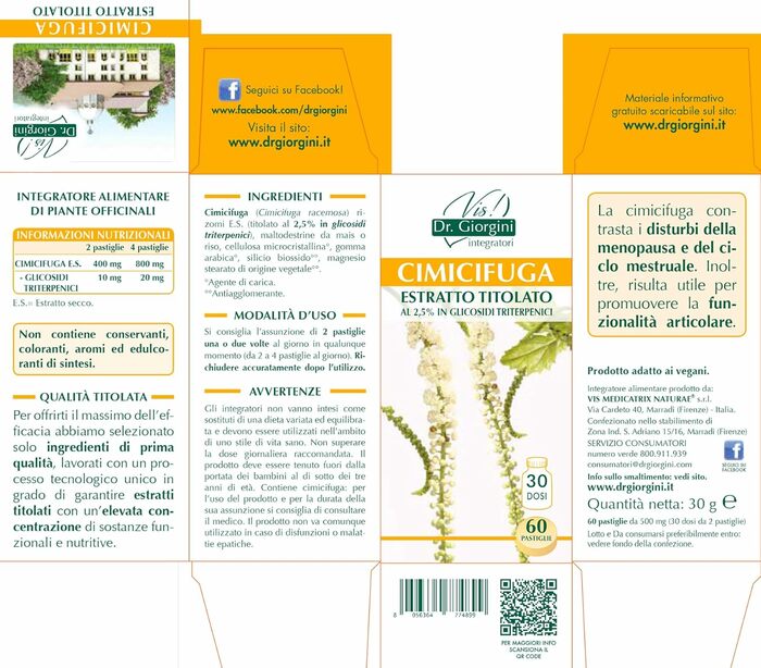 Dr. Giorgini Traubensilberkerzenextrakt — это титрированная пищевая добавка, содержащая экстракт виноградного серебристого свечного растения. В каждой упаковке находится 60 капсул, которые помогут поддержать ваше здоровье.