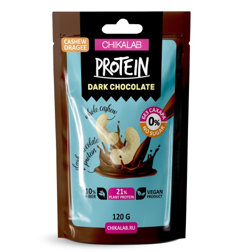 Bombbar Драже CHIKALAB, Кешью в темном шоколаде — это здоровая и вкусная альтернатива традиционным драже, идеально подходящая для тех, кто следит за своим питанием и физической формой. Каждая порция драже весит 120 грамм и состоит из кешью, покрытого темным шоколадом без добавления сахара. В состав тёмного шоколада входят какао-тёртое, какао-масло, белковая смесь (изолят горохового белка, изолят тыквенного белка) и водорастворимые волокна, что обеспечивает высокое содержание белка и полезных волокон.