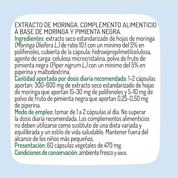 Экстракт моринги El Granero Integral — это высококачественный продукт, который содержит 60 капсул, обеспечивающих ваш организм полезными веществами. Моринга известна своими питательными свойствами и является отличным дополнением к вашему рациону.