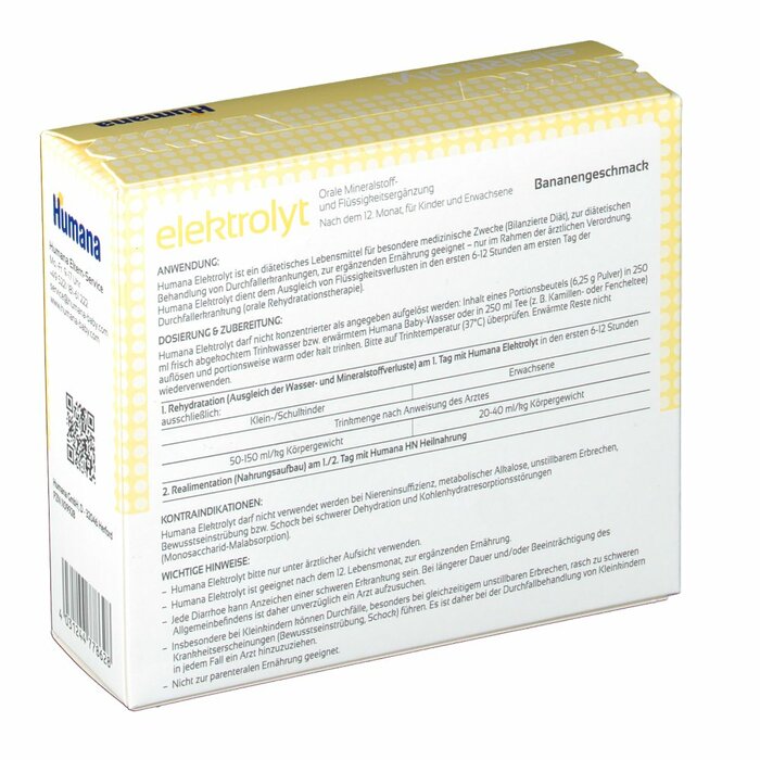 Электролит Humana Банан — это минеральная и жидкостная добавка, предназначенная для поддержания водно-электролитного баланса в организме. Упаковка содержит 75 г продукта с приятным банановым вкусом, который делает его привлекательным для детей и взрослых.