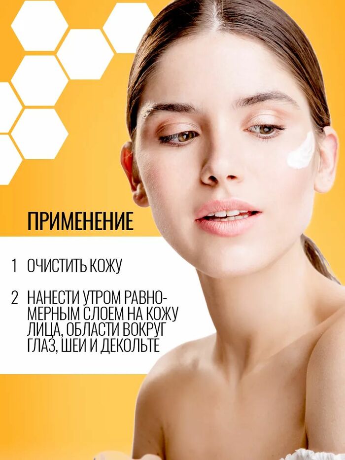 Нанести утром тонким слоем на очищенную кожу лица, шеи и области декольте. Применять ежедневно