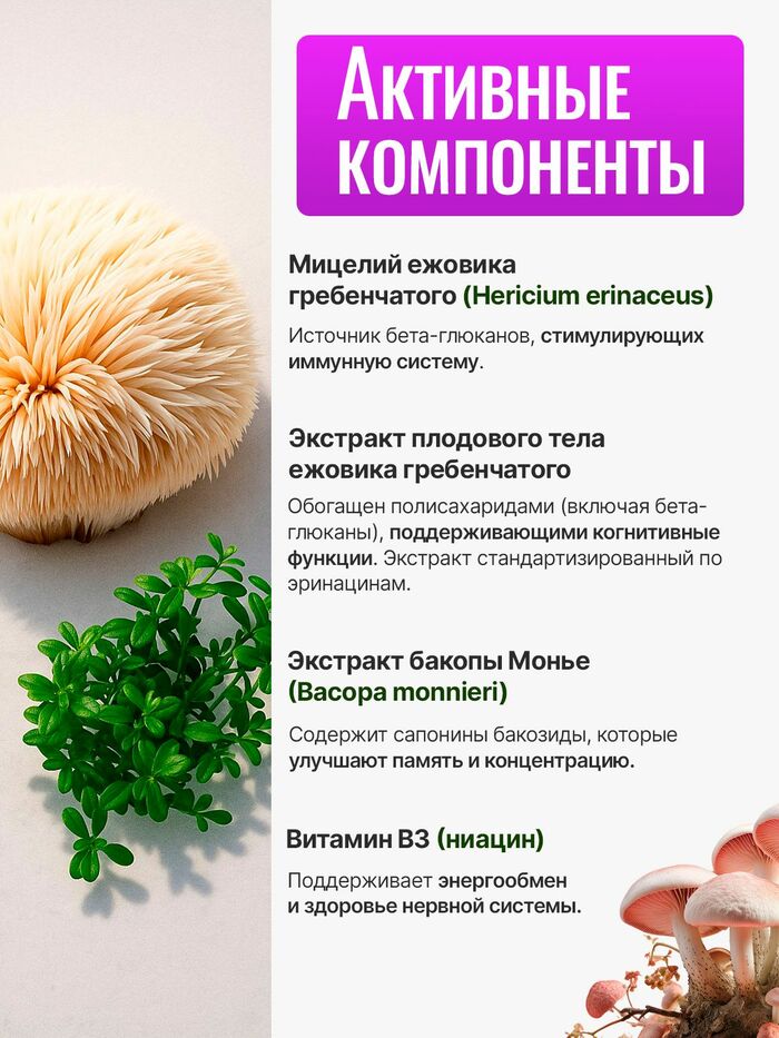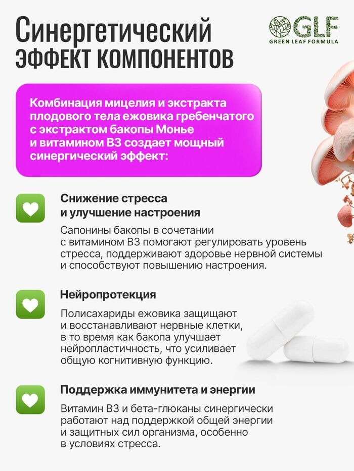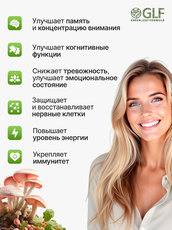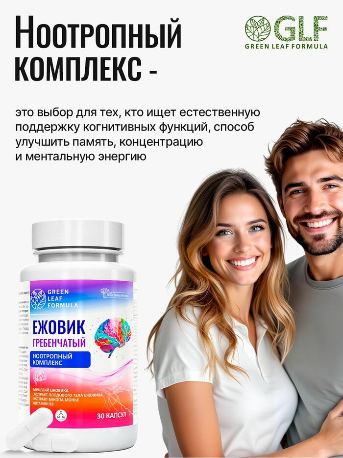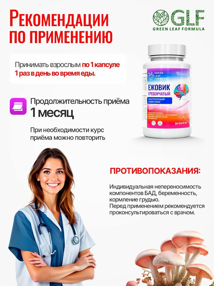 Ежовик гребенчатый от бренда GREEN LEAF FORMULA — это уникальная добавка, содержащая 30 капсул, которые помогут поддержать здоровье и активность организма.