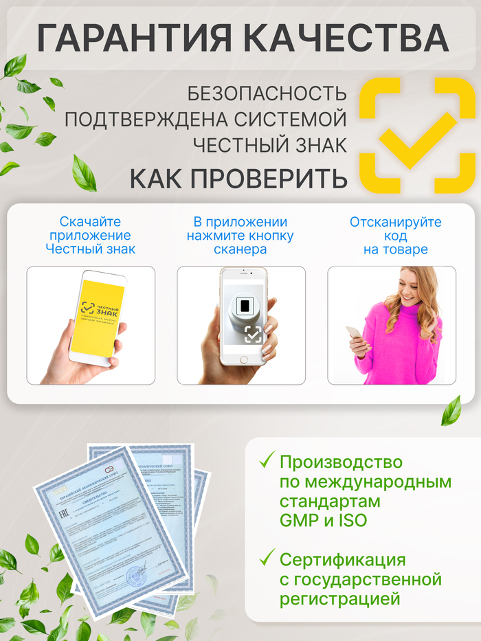 Капсулы легко проглатываются и не имеют неприятного вкуса, что делает их удобными для ежедневного использования. Рекомендуется принимать в качестве дополнения к рациону для улучшения общего состояния здоровья.