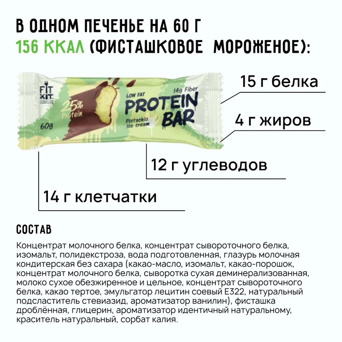 Fit Kit Батончик Protein Bar Фисташковое мороженое, 60 г
