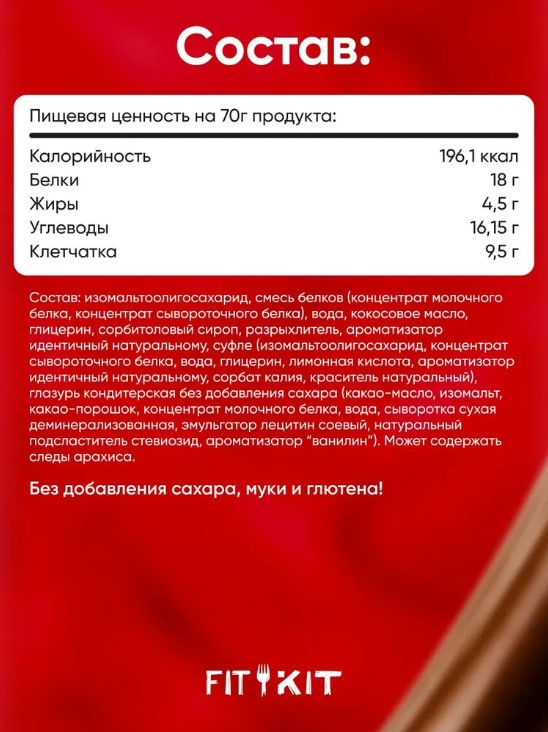 Fit Kit Протеиновое пирожное Клубника-Сливки, 70 г