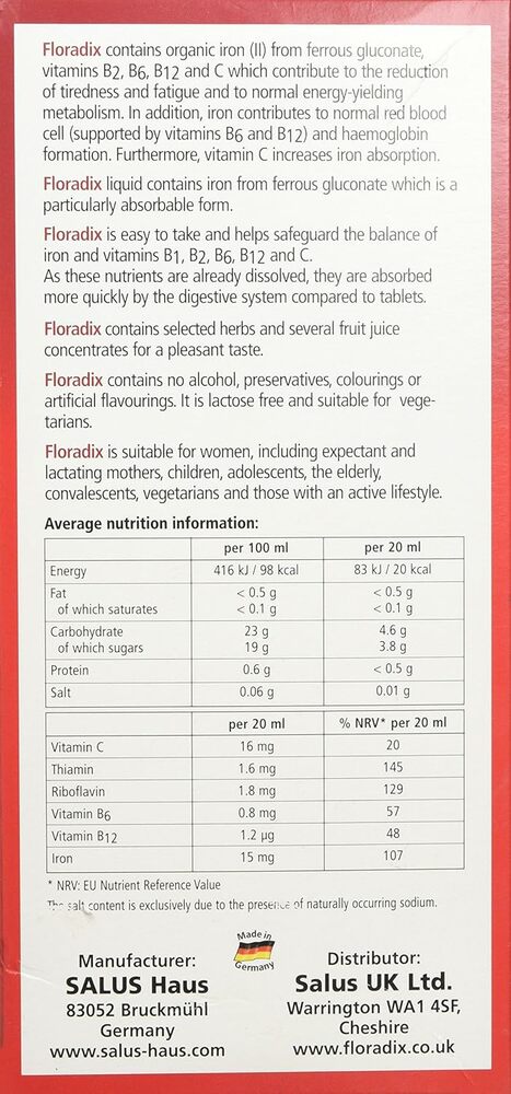 Флорадикс Флоравитал жидкая формула железа и трав 500 мл — это высококачественный продукт от бренда Salus, который помогает поддерживать уровень железа в организме. Он идеально подходит для людей, испытывающих недостаток железа, а также для вегетарианцев и веганов.
