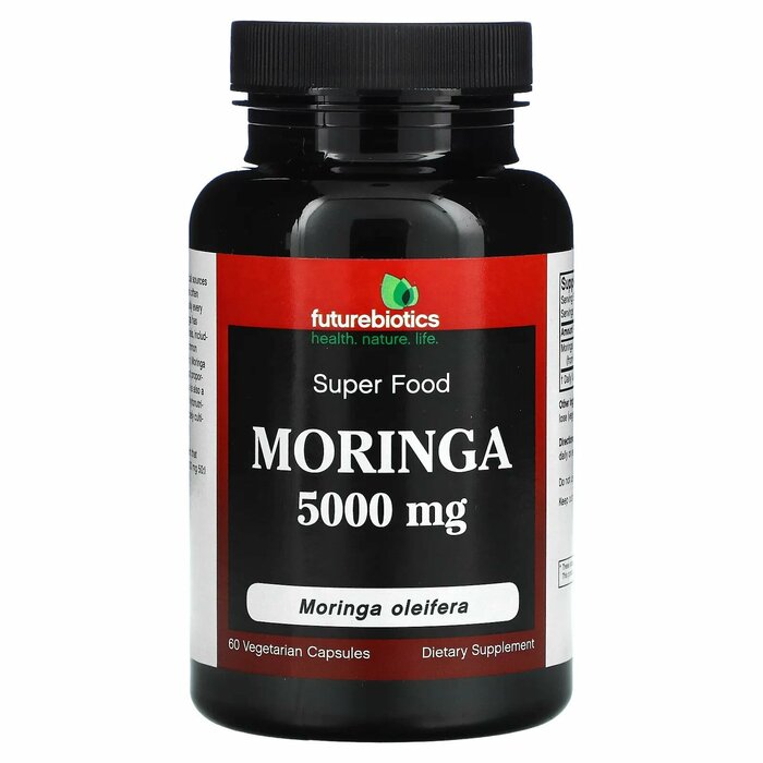 Futurebiotics Moringa — это 100% вегетарианская добавка, которая содержит 5000 мг листьев моринги премиального качества (из 100 мг экстракта листьев моринги масличной (Moringa oleifera) 50:1) в каждой капсуле.