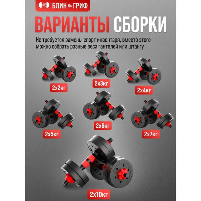 БлинДаГриф Гантели разборные 10 кг 2 шт с грифом, регулируемые, общий вес 20 кг