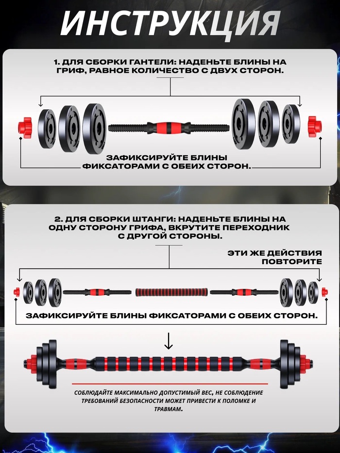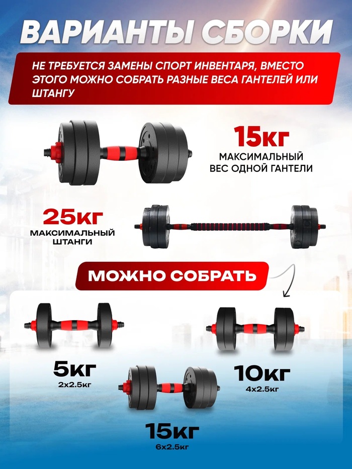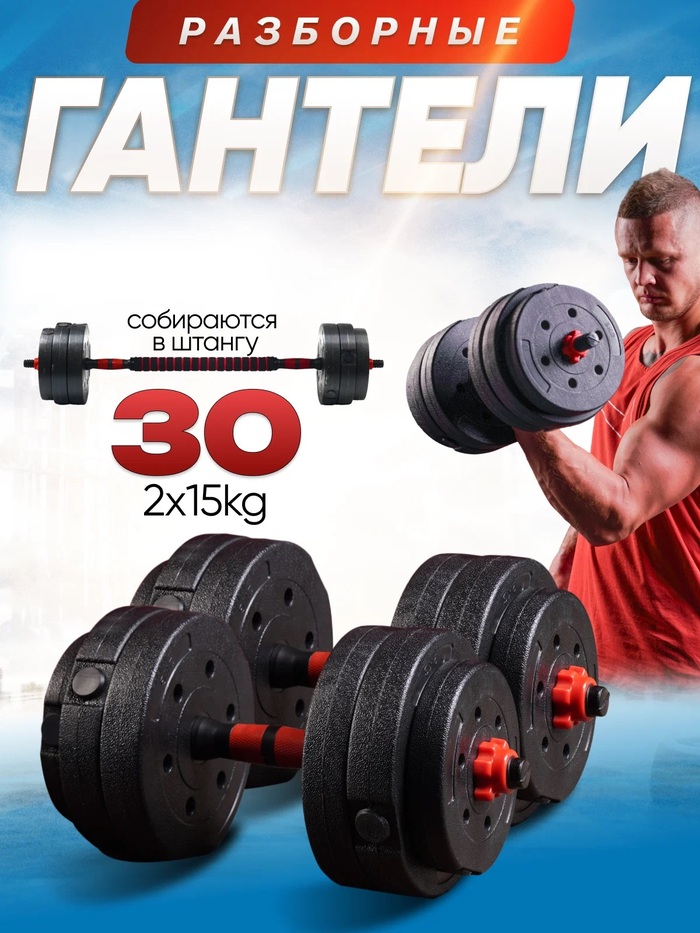 БлинДаГриф Гантели разборные 15 кг 2 шт, с грифом, регулируемые, общий вес 30 кг