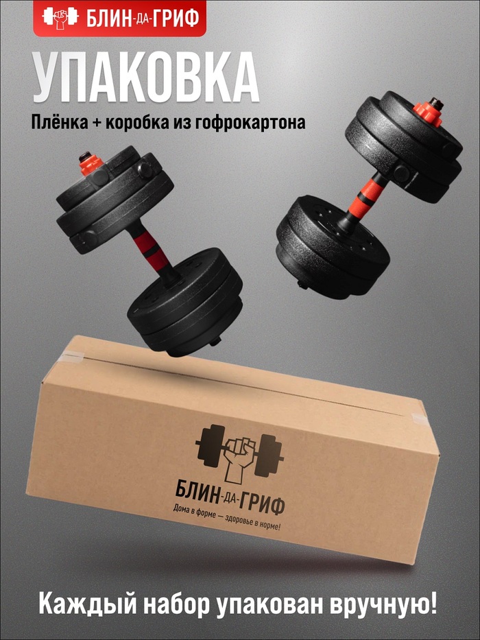 БлинДаГриф Гантели разборные 20 кг 2 шт с штангой, общий вес 40 кг