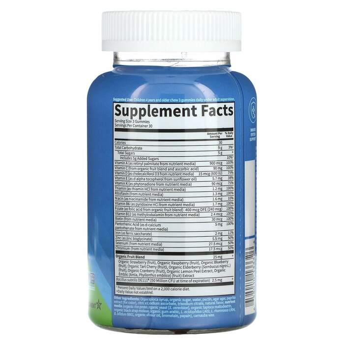 ИнгредиентыОрганический тапиоковый сироп, органический сахар, вода, пектин, агар-агар, экстракт паприки (для цвета), лимонная кислота, аскорбат натрия, тринатриевый цитрат, натуральный ароматизатор, питательные среды (органический рисовый белок, органические дрожжи [S. cerevisiae), органический мальтодекстрин из тапиоки, органическая черная патока, органическая аравийская камедь, L. acidophilus LA02, L. rhamnosus LR04, Б. бифидум (B. bifidum) BB01, органическое сафлоровое масло, бромелаин, папаин), карнаубский воск.