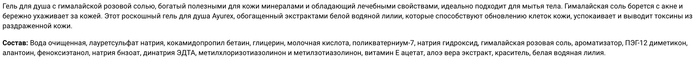 Гель для душа с гималайской розовой солью, богатый полезными для кожи минералами и обладающий лечебными свойствами, идеально подходит для мытья тела. Гималайская соль борется с акне и бережно ухаживает за кожей. Этот роскошный гель для душа Ayurex, обогащенный экстрактами белой водяной лилии, которые способствуют обновлению клеток кожи, успокаивает и выводит токсины из раздраженной кожи. Состав: Вода очищенная, лауретсульфат натрия, кокамидопропил бетаин, глицерин, молочная кислота, поликватерниум-7, натрия гидроксид, гималайская розовая соль, ароматизатор, ПЭГ-12 диметикон, алантоин, феноксиэтанол, натрия бнзоат, динатрия ЭДТА, метилхлоризотиазолинон и метилзотиазолинон, витамин Е ацетат, алоэ вера экстракт, краситель, белая водяная лилия. Отличный подарок для мамы, любимой, жене, подруге, другу, коллеге, бабушке, внучке, дочке, на 8 марта, Новый год, день рождение.