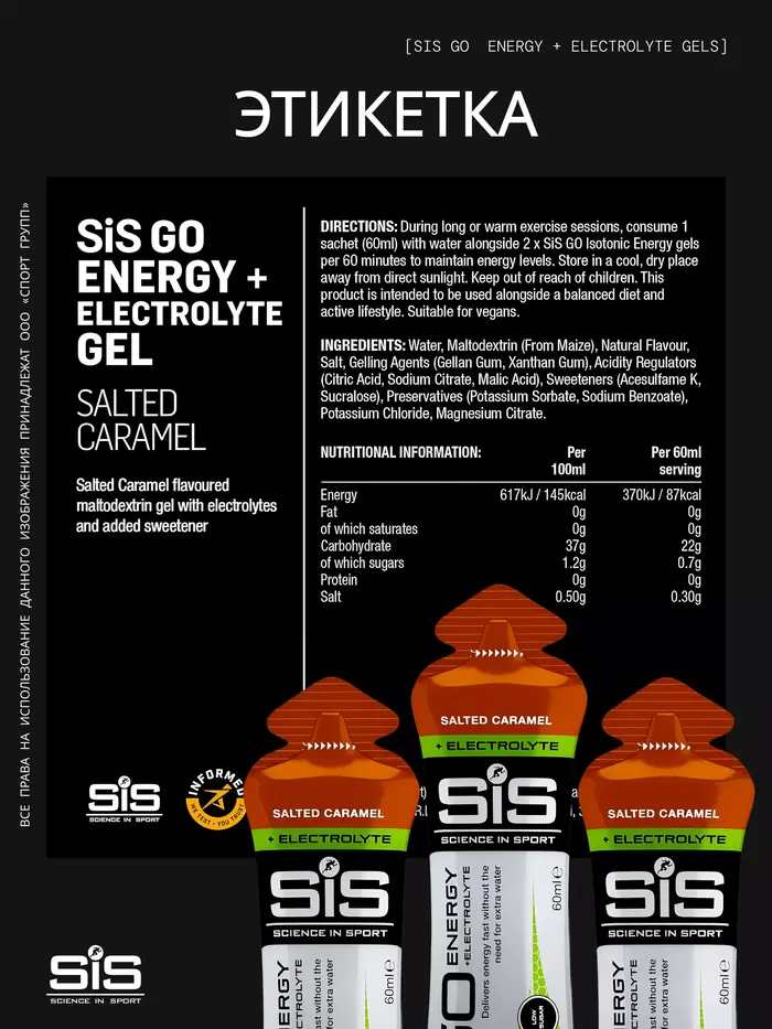 SiS Гель изотонический Russia Go Isotonic Energy + Электролит Gels Солёная Карамель, 60 мл — это инновационный энергетический гель, созданный для быстрого восполнения энергии и электролитов во время интенсивных тренировок и соревнований. Идеально подходит для спортсменов, стремящихся к максимальной производительности и быстрому восстановлению.