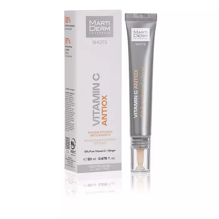 Гель Martiderm Shots Vitamin C Antiox 20 мл — это мощный антиоксидантный продукт, который помогает улучшить состояние кожи, придавая ей сияние и свежесть. Формула с витамином C способствует выравниванию тона кожи и уменьшению видимости пигментных пятен.