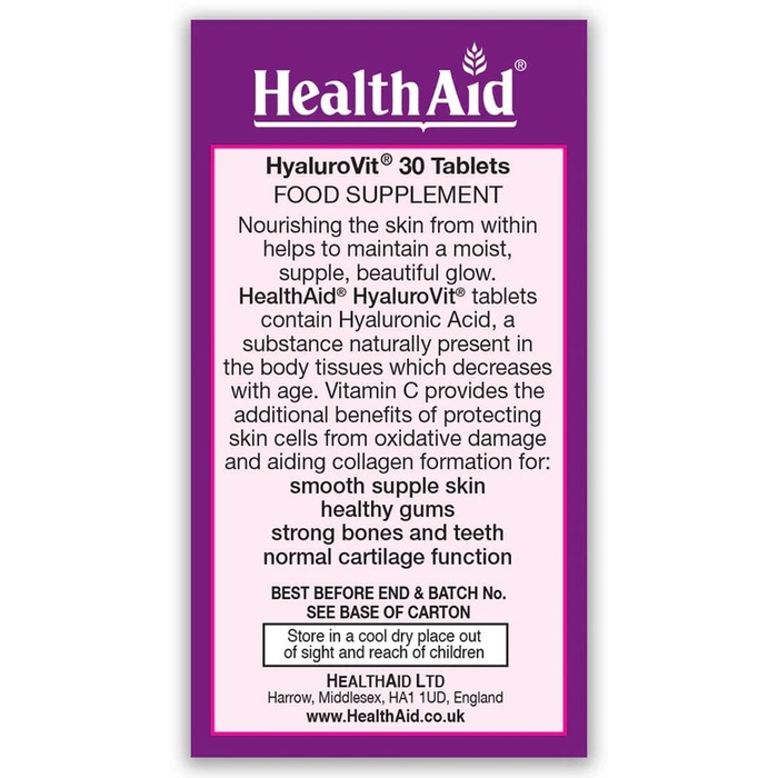 Health Aid Гиалуроновая кислота Healthaid Hyalurovit, веганские таблетки, 30 шт.