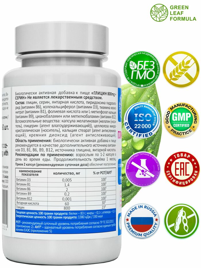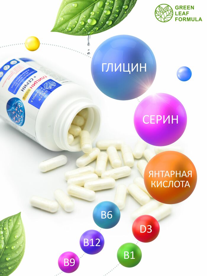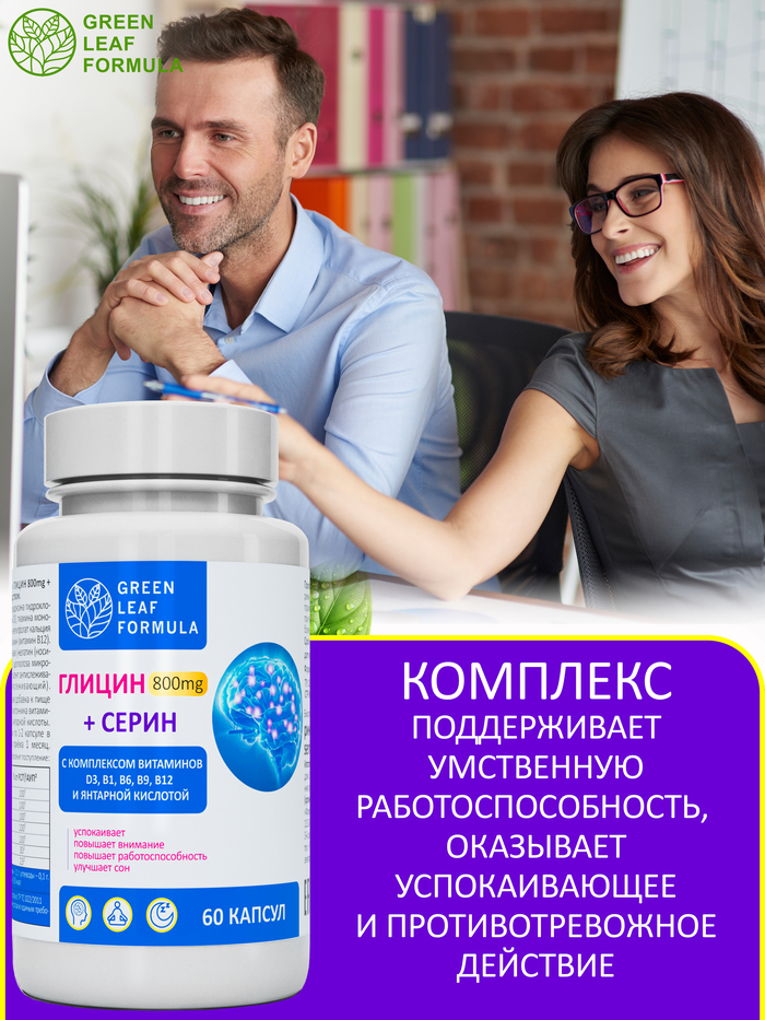 Глицин (800 мг) с янтарной кислотой и витаминами группы В от бренда GREEN LEAF FORMULA — это высококачественная добавка, которая поддерживает здоровье и активность организма. В каждой упаковке содержится 60 капсул, что обеспечивает длительный курс приема.
