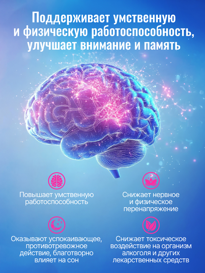Капсулы легко проглатываются и подходят для ежедневного использования. Продукт рекомендуется для людей, испытывающих умственные и физические нагрузки, а также для тех, кто хочет поддерживать здоровье нервной системы.