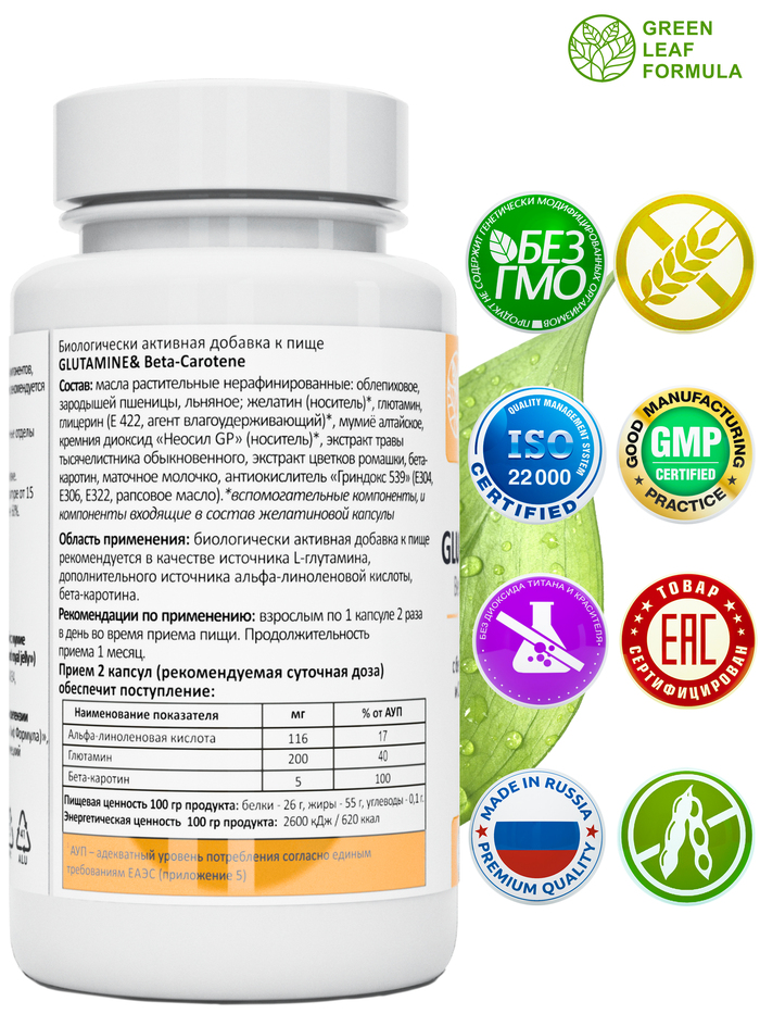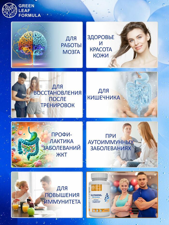 Глютамин от бренда GREEN LEAF FORMULA — это высококачественная добавка, содержащая 60 капсул, предназначенная для поддержки мышечного восстановления и общего состояния организма. Глютамин является важной аминокислотой, которая помогает в восстановлении после интенсивных тренировок и поддерживает здоровье кишечника.