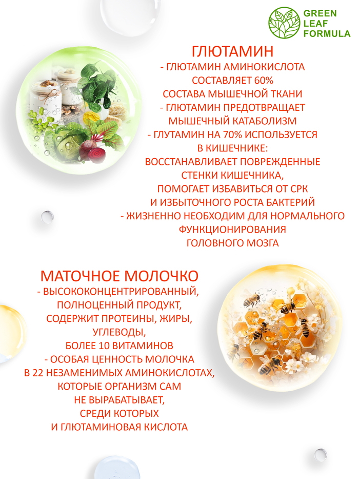 Капсулы легко проглатываются и подходят для использования как до, так и после тренировок. Глютамин от GREEN LEAF FORMULA идеально подходит для спортсменов и активных людей, стремящихся улучшить свои результаты и поддерживать здоровье.
