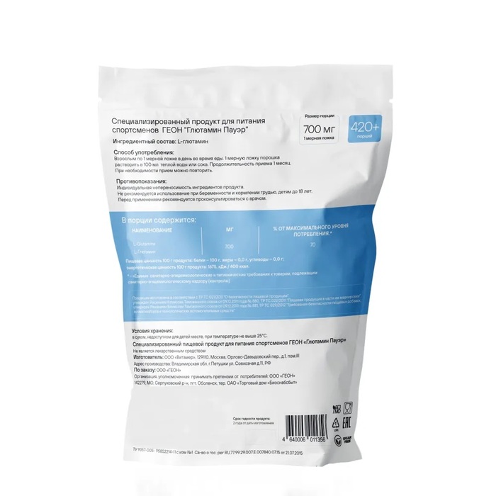 GEON Глютамин, порошок, 300 г — это высококачественная добавка на основе L-глутамина, которая способствует восстановлению после интенсивных тренировок и поддерживает иммунную систему. Глутамин помогает ускорить регенерацию мышц, снизить уровень усталости и улучшить общее состояние организма, что особенно важно для спортсменов, активно занимающихся физической активностью.