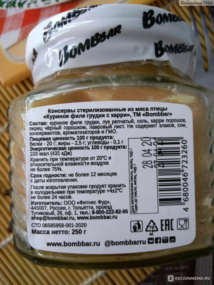 Консервы Куриное филе с карри от бренда Bombbar — это вкусное и питательное решение для быстрого перекуса или полноценного обеда. В каждой упаковке содержится 250 г нежного куриного филе, приготовленного с ароматными специями карри.
