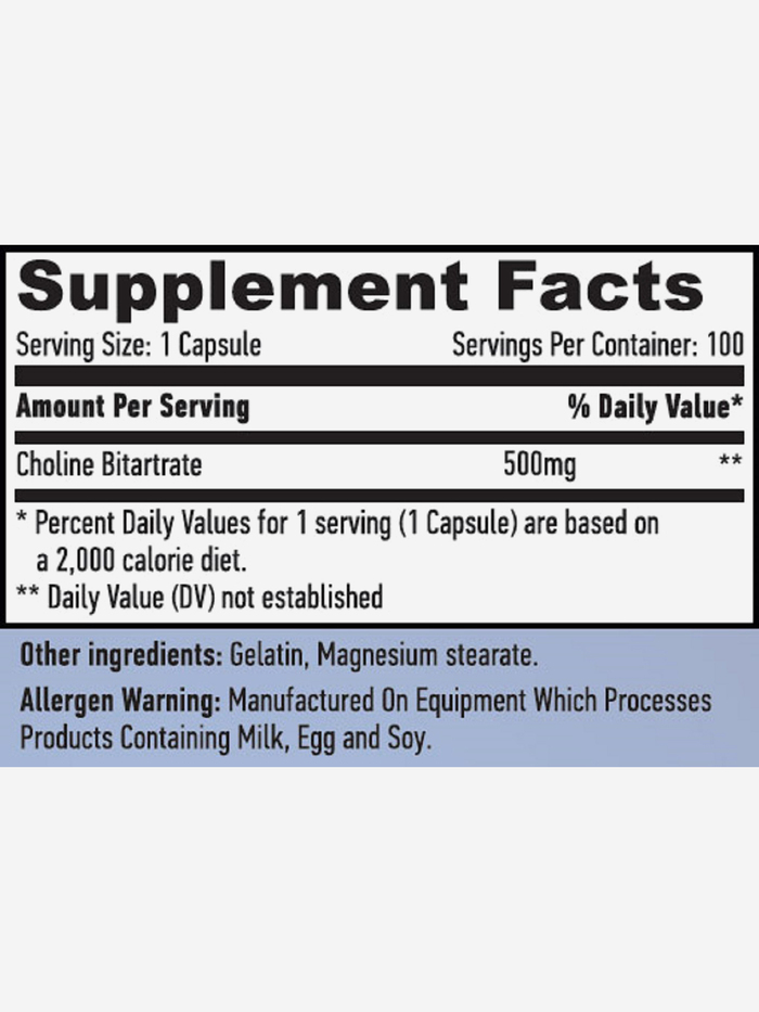 HAYA LABS Холин битартат (500 мг), 100 капсул