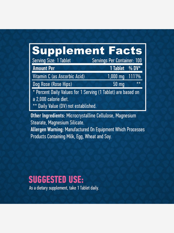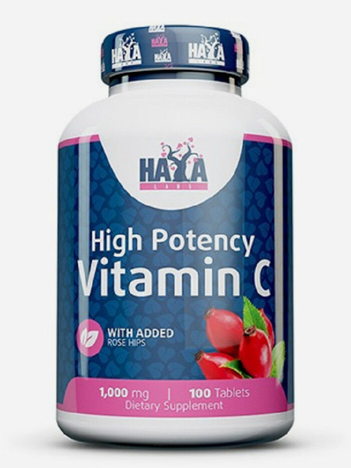 HAYA LABS Витатмин C High Potency с шиповником (1000 мг), 100 табл